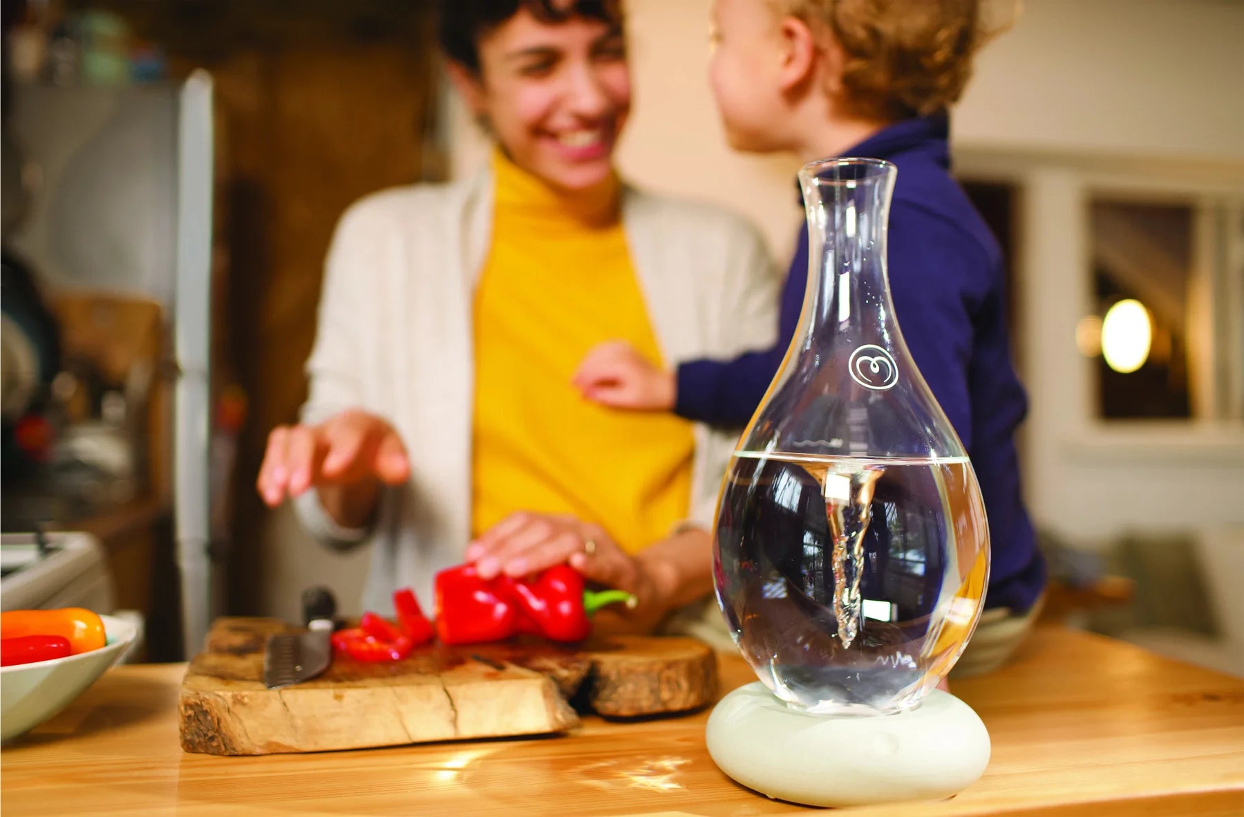 Slik fungerer det: Swirls porselensbase genererer et mildt boblebad som lufter og balanserer vannet ditt, og etterligner strømmen i en fjellkilde. Dette virvelbevegelse oksygenerer og alkaliserer opptil 6000 ganger raskere enn stille vann, noe som bidrar til å gjenopprette vitalitet og smak. Resultatet er mykt, silkemykt, pH-balansert vann som støtter bedre hydrering og absorpsjon på cellenivå.